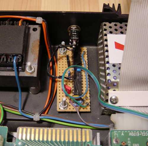 There was enough room in the slimline Cumana case to fit my little circuit board in between the mains power supplies. Note the switch in the case at the back, attached by the black wires.